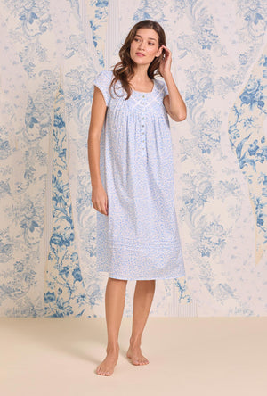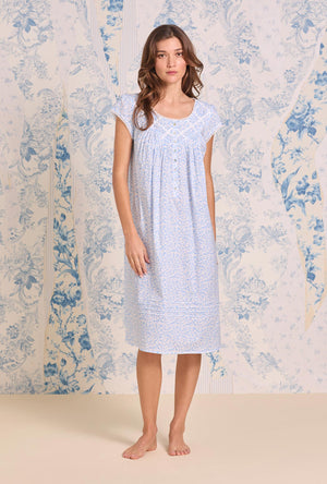 This effortless cotton cap sleeve waltz nightgown is designed with a latticework of Venise lace over the delicate pintucks. Finished with a placket of akoya shell buttons.