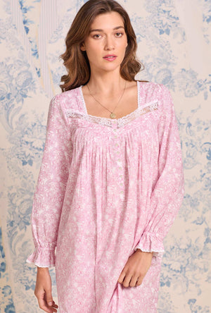 An effortless blend of classic and elegant design, this Long Sleeve Ballet Nightgown is crafted from our finest 100% Cotton Woven Lawn. A sweetheart neckline adorned with delicate floral embroidered lace edge and pintuck details evokes timeless grace. The yoke placket features round Akoya buttons, while side seam pockets provide a touch of practicality. Finished with a ruffled hem, this gown invites serenity into every moment.