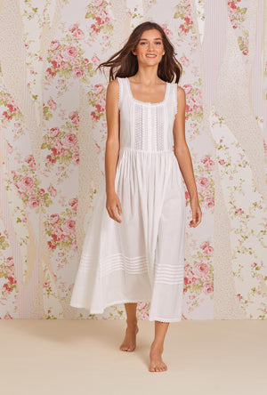 Queen Anne's Lace Couture by Eileen West Pure Romance….and vintage styling combine in our beautiful new nightgown which features inset lace details down to the waistline. Delicate pintuck details at the waist highlight the fullness of the dramatic sweep. Edge lace details the full hemline. Pairs perfectly with our Victorian Dreams Robe.