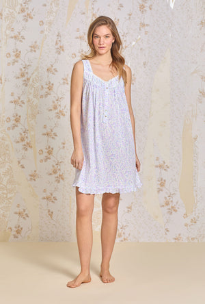 A lovely Cotton Pointelle chemise. This stunning style is elevated with venise floral lace trim along the sweetheart neckline. The yoke consists of inserted floral venise lace and vertical pintucking details. Finished with floral Akoya shell buttons and a ruffled hem.