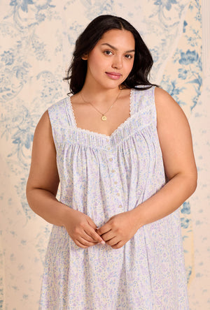 A lovely Cotton Pointelle waltz gown. This stunning style is elevated with venise floral lace trim along the sweetheart neckline. The yoke consists of inserted floral venise lace and vertical pintucking details. Finished with floral Akoya shell buttons and a ruffled hem.