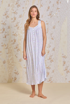 A classic "Eileen" nightgown in our featherlight Cotton Woven Lawn. This stunning style is elevated with venise floral lace trim along the sweetheart neckline and inserted at the yoke. Other design details include vertical pintucking detail and round Akoya shell buttons. Venise floral lace details above the ruffled hem.