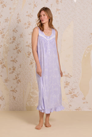 An iconic "Eileen" ballet nightgown crafted in our soft Tencel ™ Modal Jersey Knit. This stunning nightgown features edge lace trim at the round neckline beaded with a satin ribbon. A button placket of pintucking details, floral venise lace, and round Akoya shell buttons that is perfect for nursing mothers. Finished with a ruffled hem.