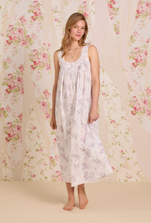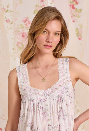 This angelic nightgown is crafted in our classic 100% cotton woven lawn. It features stunning venise floral lace beaded with a satin ribbon along the sweetheart neckline and at the yoke of the gown. The button placket has intricate pintucking details and round Akoya shell buttons. Finished with a straight hem.