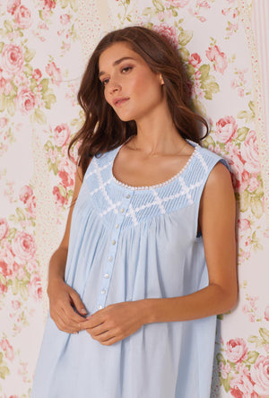 A poetic and delicate look, with a pop of venise lace over fine pintucks at the yoke. Finished with a placket of akoya shell buttons.