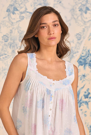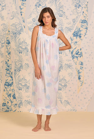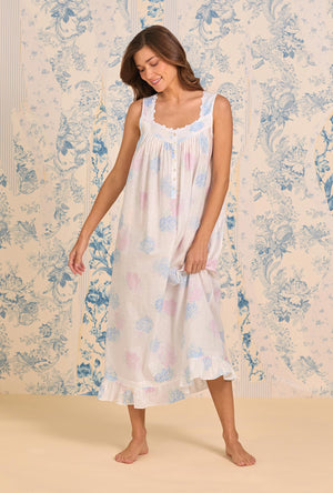 An effortless blend of classic romance and graceful comfort, the “Eileen” Ballet Nightgown is crafted in 100% cotton woven lawn for a light, breathable feel. Floral Venise lace traces the sweetheart neckline and front yoke, while delicate pintucks and soft pleating lend heirloom texture through the bodice. Finished with an Akoya shell button placket and a softly ruffled hem, this timeless silhouette is made for warm nights and gentle mornings.