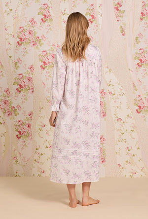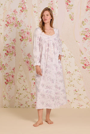 This angelic nightgown is crafted in our classic 100% cotton woven lawn. It features stunning venise floral lace beaded with a satin ribbon along the sweetheart neckline and at the yoke of the gown. The button placket has intricate pintucking details and round Akoya shell buttons. Finished with a straight hem.