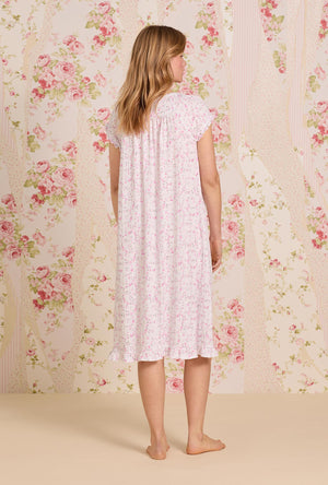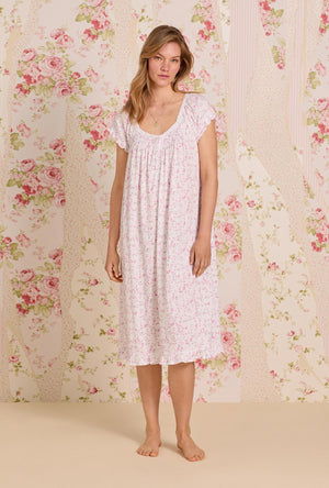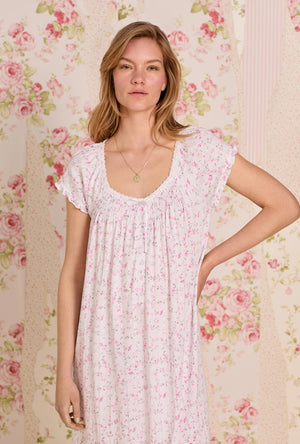 This darling nightgown is crafted in our soft cotton modal pointelle knit. It features a sweetheart neckline with beaded edge lace that includes a satin ribbon that ties at the center. The button placket has flower-shaped buttons and smocking details. Finished with a ruffled hem.