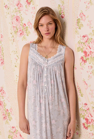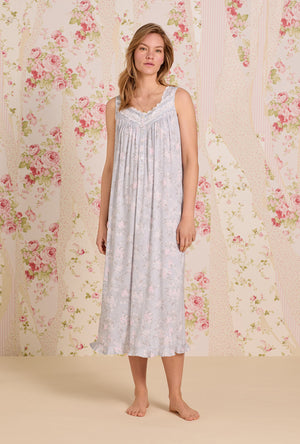 This long sleeve nightgown is crafted in the most comfortable cotton jersey knit. This nightgown features a classic sweetheart neckline adnorned with edge lace. It has inserted venise floral lace and intricate pintucking details at the yoke. Finished with flower-shaped buttons and a ruffled hem.