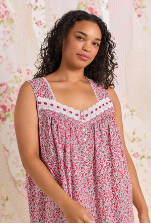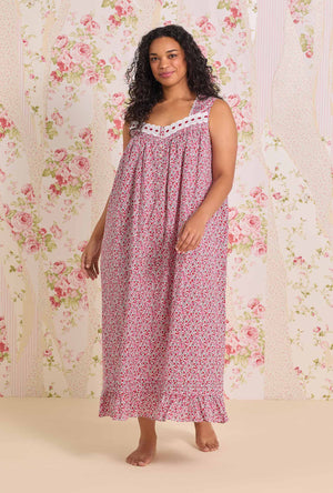 A portrait of timeless romance, this long nightgown is crafted from our finest 100% Cotton Woven Lawn. Whisper-soft and endlessly graceful. A sweetheart neckline is tenderly trimmed with delicate edge lace, adding a touch of vintage charm. Across the yoke, beaded Venise floral lace glistens with heirloom beauty, further adorned with a velvet ribbon tied in a demure bow. The button placket glimmers with round Akoya shell buttons, while pintucks lend quiet texture and refinement. Finished with a softly ruffled hem, this gown is an ode to femininity, crafted to be cherished.