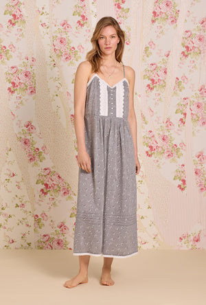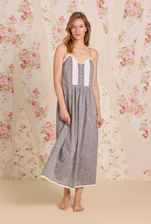 A new staple knit in your collection. This classically designed waltz nightgown is made in our cozy modal jersey knit. It features venise floral lace trims along the sweetheart neckline and cap sleeves. At the yoke the delicate venise lace is beaded with a satin ribbon. The button placket consists of vertical pintucking details and round iridescent buttons. Finished with a baby ruffle hem.