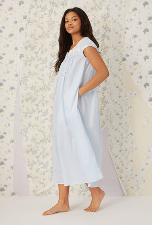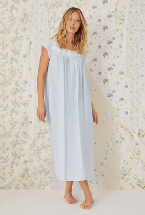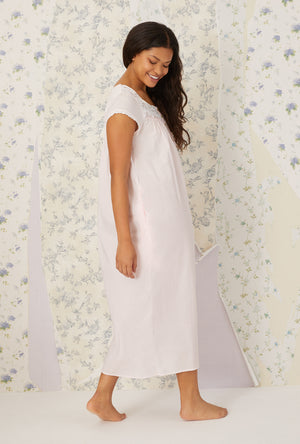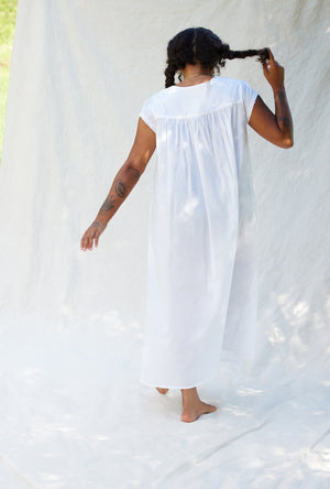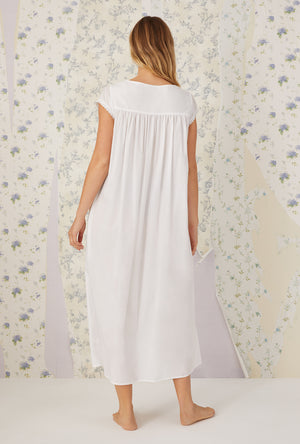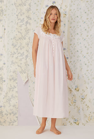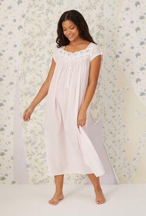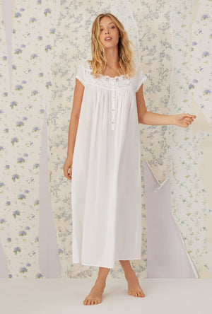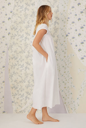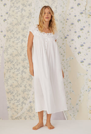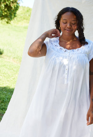 We're enchanted by this 100% cotton gown, which is trimmed with a stunning, floral-motif venise lace. The fine pintucks and akoya shell buttons are signature Queen Anne's Lace details. The pockets add functionality to a fresh, romantic look.