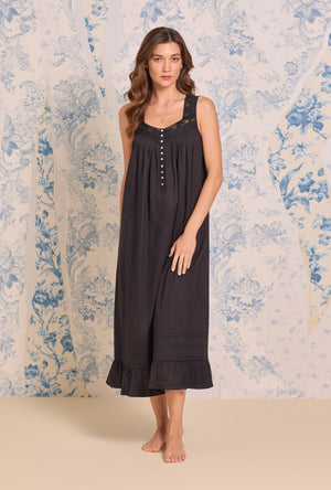 An effortless blend of classic and elegant design, the "Eileen" Ballet Nightgown is crafted in our finest 100% Cotton Woven Lawn. The sweetheart neckline is adorned with delicate floral embroidered lace edge and pintuck details, while the yoke placket shines round Akoya buttons. Finished with a ruffled hem, this gown is a timeless expression of grace.