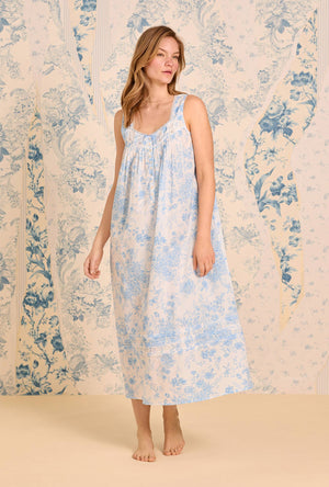 A flawless "Eileen" nightgown for everyday wear. Crafted in 100% cotton woven lawn. This exquisite gown features intricate edge lace along the sweetheart neckline that is beaded at the center with a lovely satin ribbon. Other design details include venise floral lace and vertical pintucking at the yoke. Finished with round Akoya shell buttons and a straight hem.