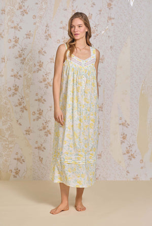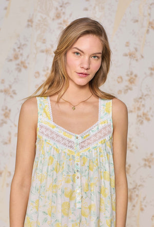 This classic "Eileen" will be your new staple nightgown. Our sleeveless ballet nightgown is crafted in our 100% Cotton Woven Lawn. Features stunning embroidered lace edge along the sweetheart neckline. Pintucking details and embroidered lace at the yoke. Finished with floral akoya shell buttons and pintucking details above the hemline.