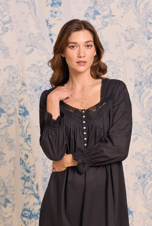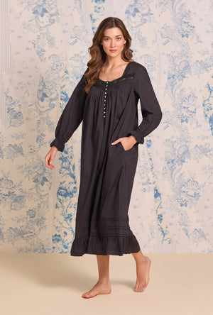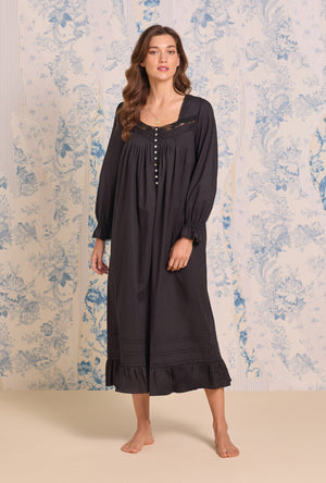 An effortless blend of classic and elegant design, this Long Sleeve Ballet Nightgown is crafted from our finest 100% Cotton Woven Lawn. A sweetheart neckline adorned with delicate floral embroidered lace edge and pintuck details evokes timeless grace. The yoke placket features round Akoya buttons, while side seam pockets provide a touch of practicality. Finished with a ruffled hem, this gown invites serenity into every moment.