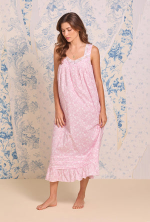 An effortless blend of classic and elegant design, the "Eileen" Ballet Nightgown is crafted in our finest 100% Cotton Woven Lawn. The sweetheart neckline is adorned with delicate floral embroidered lace edge and pintuck details, while the yoke placket shines round Akoya buttons. Finished with a ruffled hem, this gown is a timeless expression of grace.
