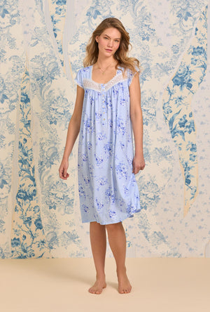 Our modal knit waltz cap sleeve nightgown features a lovely sweetheart neckline trimmed with dainty venise floral lace edges. The yoke is embellished with a venise floral lace button placket with akoya shell floral buttons and vertical pintucking details. Finished with a straight hem for a stunning waltz silhouette.