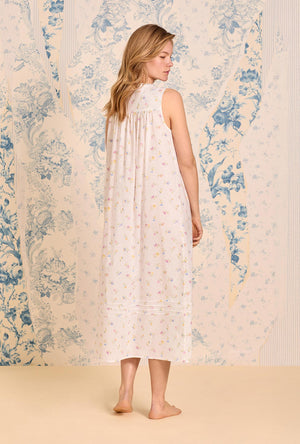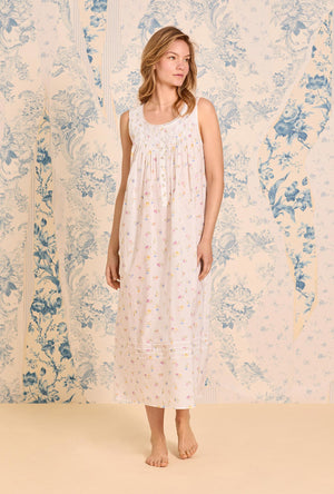 This poetic ballet nightgown is crafted in our classic 100% Cotton Woven Lawn. It features a round neckline with vertical pintucking details and sweet crisscross floral lace at the yoke. Finished with a placket of round Akoya shell buttons and pintucking above the hem.