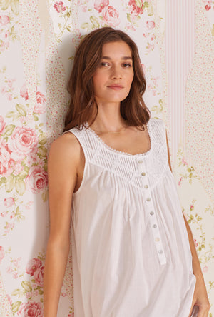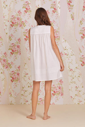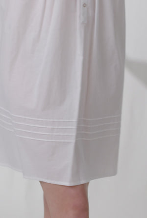 This flowy cotton chemise is truly timeless, designed with a latticework of venise lace over the delicate pintucks. Finished with a placket of akoya shell buttons.