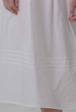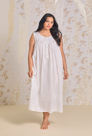 Poetry in motion, this flowy cotton lawn ballet gown is lightweight and lovely. The yoke is designed with an intricate lattice of soft venise lace over pintucks. Finished with a placket of akoya shell buttons.