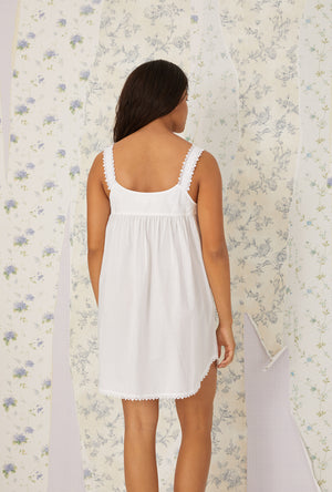 A sweet chemise with all the romantic details that you have come to expect from Queen Anne's Lace, including akoya shell buttons, insets and edges of venise lace and pintucks that flatter the body. Pair it with the matching Heirloom Dream Short Robe.