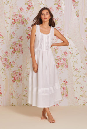 Queen Anne's Lace Couture by Eileen West Pure Romance….and vintage styling combine in our beautiful new nightgown which features inset lace details down to the waistline. Delicate pintuck details at the waist highlight the fullness of the dramatic sweep. Edge lace details the full hemline. Pairs perfectly with our Victorian Dreams Robe.